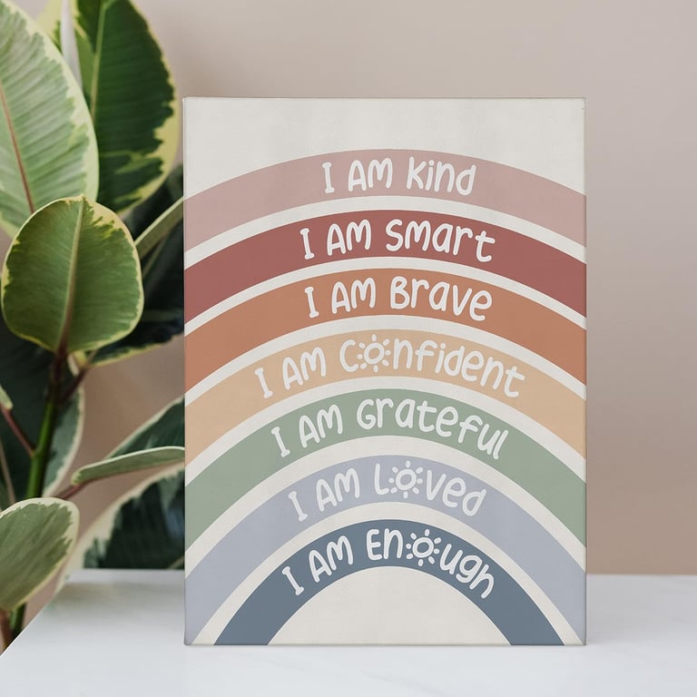 These boho canvas wall art pieces feature cute, fun, and inspirational quotes, making them the perfect addition to your boho rainbow décor theme.