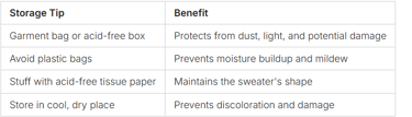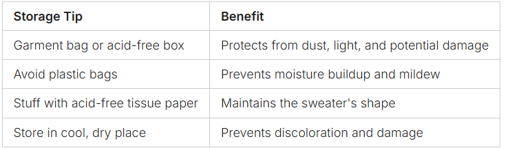 Keep your sweater in a cool, dry spot, away from sunlight or heat.
